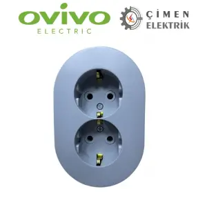 Gri İkili Topraklı Priz Sıva Üstü