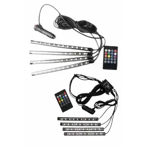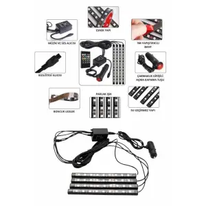 Araç Içi Aydınlatma Kumandalı 12 Led Ayak Altı Led Ambiyans Işığı Sese Duyarlı Kumandalı