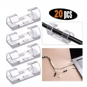 20'li Yapışkanlı Kablo Sabitleyici Şeffaf Klips