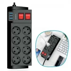Isıya Dayanıklı Termal Akım Korumalı 2 Metre 16A 4000W 8li Priz ve 3 Usb Li Uzatma Kablosu