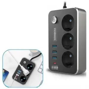Isıya Dayanıklı Termal Akım Korumalı 2 Mt 10A 2500W 3lü Priz ve 3 Usbi 21A Uzatma Kablosu