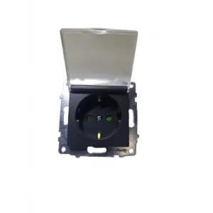 Ovivo Metalik Siyah Kapaklı Topraklı Priz Çocuk Korumalı Çerçevesiz