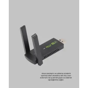 Ultratekno Dual Band WiFi Adaptör – 1200 Mbps, USB 3.0, Çift Antenli, Geniş Kapsama Alanı ve Yüksek Hız