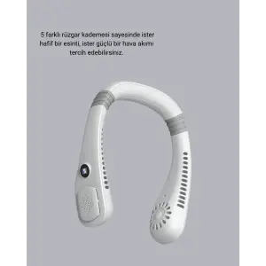 Giyilebilir Boyun Fanı 360° Dairesel Rüzgar ve 5 Kademeli Hız Ayarlı