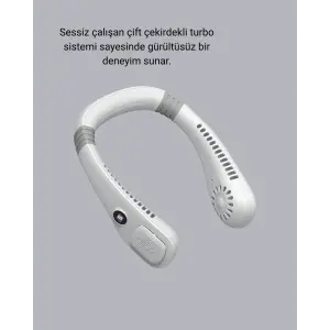 Kablosuz Giyilebilir Boyun Fanı Çift Motorlu ve 5 Kademeli Hız Kontrolü