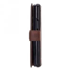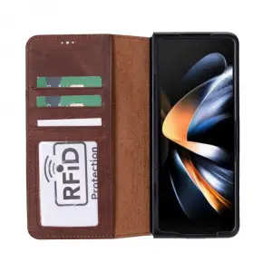Samsung Galaxy Z Fold5 Uyumlu Deri Cüzdanlı Kılıf Antik Kahve