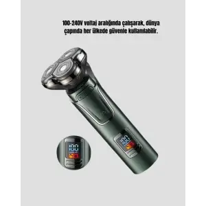3D Akıllı Kesim Teknolojili Şarjlı Tıraş Seti – 3 Başlıklı, Paslanmaz Çelik Bıçaklı