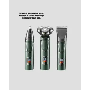 Kablosuz Profesyonel Erkek Bakım Seti – 3 Başlıklı, 3D Akıllı Kesim, Taşınabilir