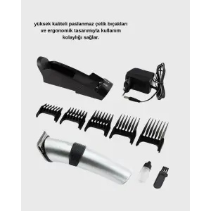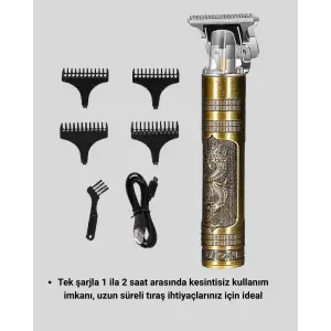 Şarjlı T Bıçaklı Saç ve Sakal Tıraş Makinesi – 3 Başlıklı, Güçlü Motorlu, 2 Saat Kullanım