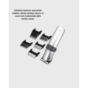 Profesyonel Şarjlı Saç ve Sakal Kesme Makinesi – Paslanmaz Çelik Bıçaklı, Ergonomik ve Sessiz Motorlu