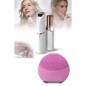 KAŞ BIYIK VE YÜZ EPİLASYON ALETİ VE TİTREŞİMLİ YÜZ TEMİZLEME MASAJ ALETİ İKİLİ SET