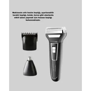 Şarjlı Islak & Kuru Tıraş Makinesi – Saç, Sakal, Burun ve Vücut İçin 4’ü 1 Arada Set