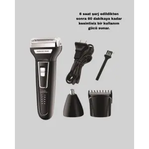 T Bıçaklı Şarjlı Saç Kesme ve Sakal Düzeltici – Burun Trimmerlı 2’si 1 Arada Set