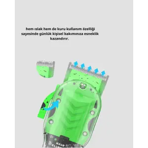 Profesyonel Şarjlı Saç ve Sakal Tıraş Makinesi – Çelik Bıçaklı, Ayarlanabilir Başlıklı, Kablosuz