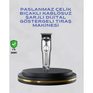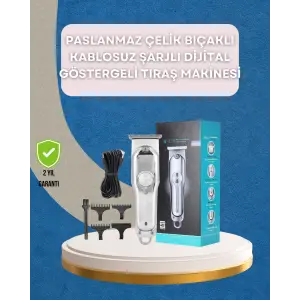 Kablosuz, Paslanmaz Çelik Bıçaklı Profesyonel Saç ve Sakal Tıraş Makinesi – Sessiz, Güçlü ve Ergonomik