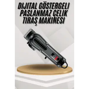 Tıraş Makinesi Saç Sakal Ense Çizim Profesyonel LCD Ekran Paslanmaz Çelik