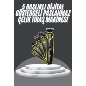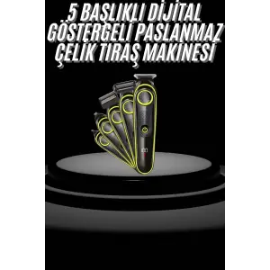 5 Başlıklı Şarjlı Tıraş Makinesi Led Ekran Saç Sakal Ense Tıraşına Uygun Bakım Seti