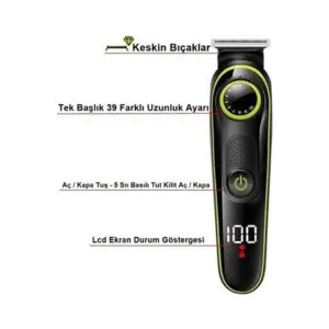 Unısex Çok Fonksiyonlu Bakım Seti Led Göstergeli Tıraş Makinesi Saç Sakal Vücut