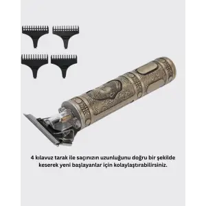 4 Kılavuz Taraklı Profesyonel Saç ve Sakal Kesme Makinesi