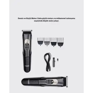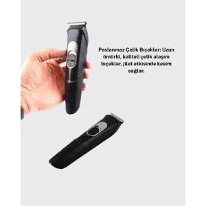 Sessiz Motorlu, Kablosuz Kullanımlı Şarjlı Saç ve Sakal Kesme Makinesi – Taraklı Set