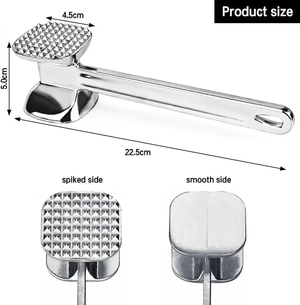ET DÖVME ÇEKİCİ ÇİFT TARAFLI“Lezzetli Yemekler İçin Profesyonel Dokunuş!”Yüksek kaliteli alüminyum alaşımdan üretilen bu et dövme çekici, narin et yemekleri hazırlamak için ideal bir seçenektir. Sağlam yapısı sayesinde uzun ömürlü bir kullanım sunarken, kolay temizlenebilir olması da mutfakta pratiklik sağlar. Bu çekici, sosis ve köfte hazırlamak için mükemmeldir ve özellikle yumuşak biftekler için pres tekerleği ve kıskaçlarla kombine edilerek kullanılabilir. Bu özellikler, yemek hazırlık sürecinizi daha verimli hale getirirken, etlerinizi mükemmel dokuda pişirmenize yardımcı olur.makinede yıkama yapılmamalıdır. lütfen elde temizleyiniz.