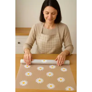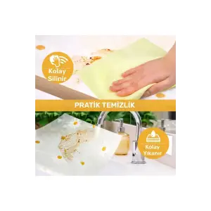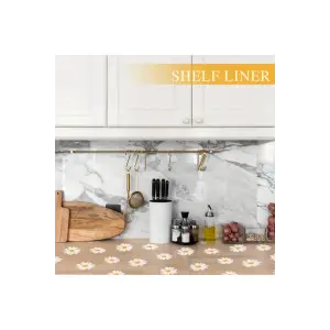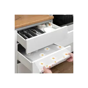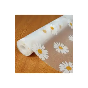 Mutfak Eva Shelf Liner Şeffaf Astar Kaymaz Dolap İçi Çekmece Örtüsü Papatya Desen Mat 45cmx10 Metre