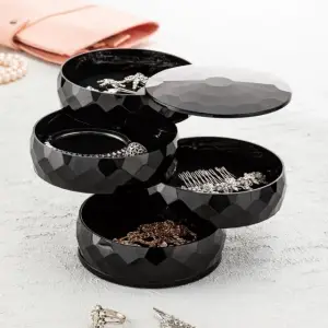 360 Derece Dönebilen 4 Katlı Takı - Toka - Küpe-Bileklik Organizer - Siyah (336336)