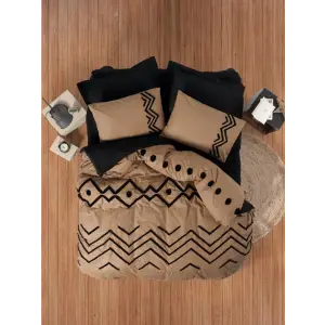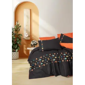 Cotton Box Puf Nakışlı Ranforce Çift Kişilik Nevresim Takımı Elio Bakır Siyah