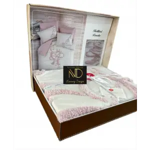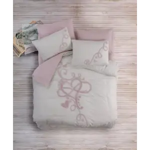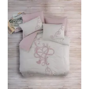 Cotton Box Puff Nakışlı Ranforce Çift Kişilik Anneler Günü Nevresim Takımı Bellini Pembe