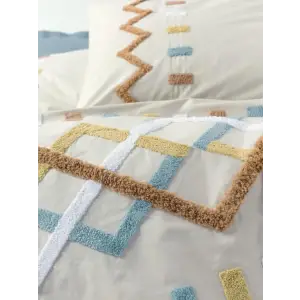Cotton Box Plain Plaid Çift Kişilik Nevresim Takımı Krem