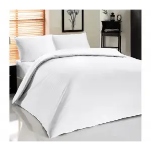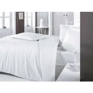 Clasy Çizgili Saten Nevresim Takımı Çift Kişilik Beyaz