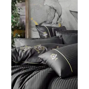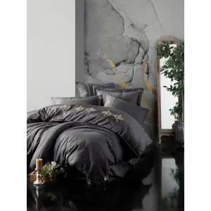 Cotton Box Brode Nakışlı Çift Kişilik Saten Nevresim Takımı King Antrasit