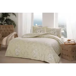 Taç Çift Kişilik Ranforce Nevresim Takımı Lily Bej
