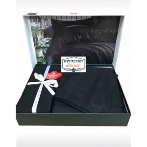 Cotton Box Çift Kişilik Jakarlı Saten Nevresim Takımı Dama Siyah