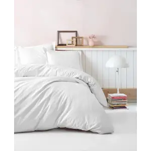Cotton Box Çift Kişilik Saten Nevresim Takımı Elegante Stripe Beyaz
