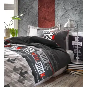 Cotton Box Genç Ranforce Nevresim Takımı Tek Kişilik Rock Kırmızı