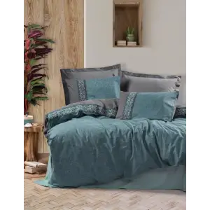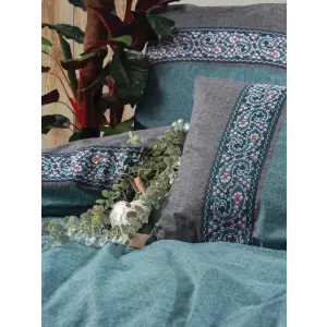 Cotton Box Folk Art Çift Kişilik Nevresim Takımı Erna Petrol