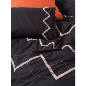 Cotton Box Puf Nakışlı Ranforce Çift Kişilik Nevresim Takımı Mirely Siyah Kiremit