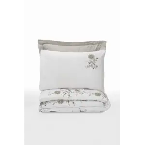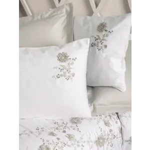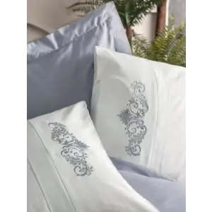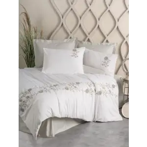 Cotton Box Brode Nakışlı Çift Kişilik Saten Nevresim Takımı Bianna Gri