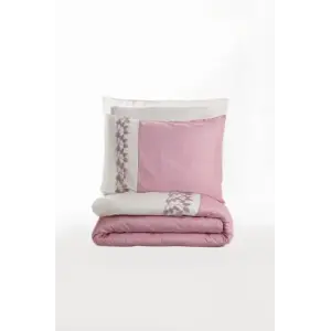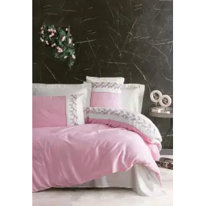 Cotton Box Brode Nakışlı Çift Kişilik Saten Nevresim Takımı Niobe Pembe