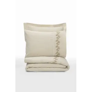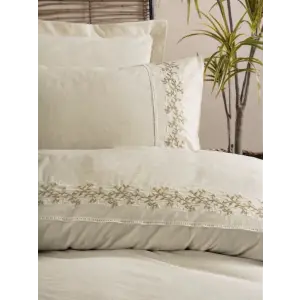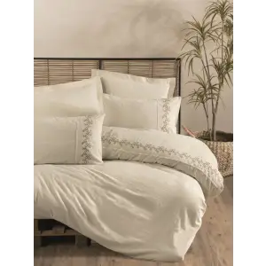 Cotton Box Brode Nakışlı Çift Kişilik Saten Nevresim Takımı Amaya Bej