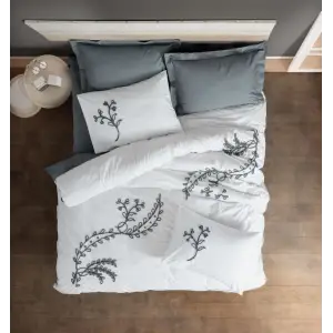 Cotton Box Brode Ranforce Çift Kişilik Nevresim Takımı İvy Gri