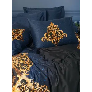 Cotton Box Palace Saten Çift Kişilik Nevresim Takımı Tutsu Lacivert