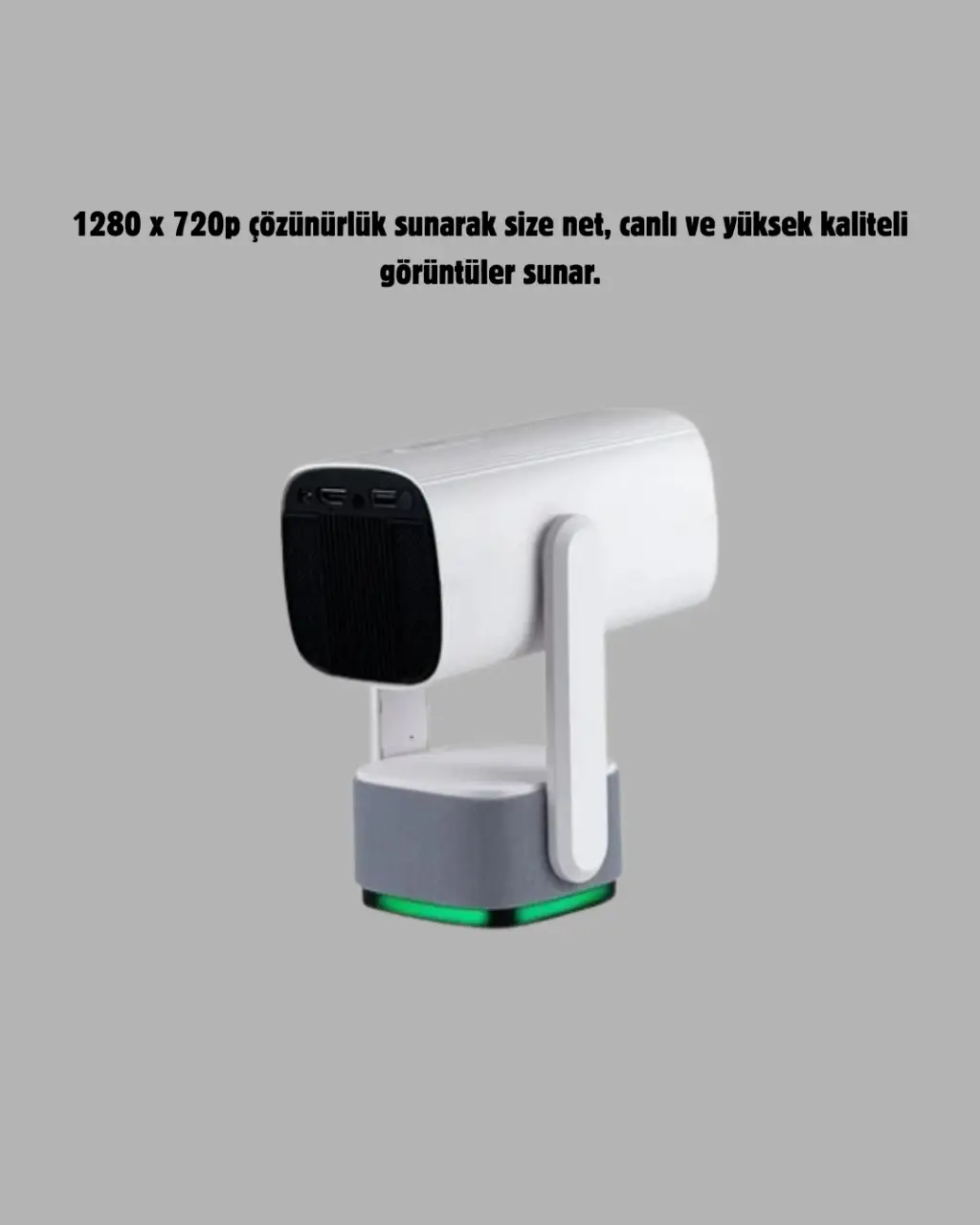 Evde sinema keyfini yeniden tanımlayan bu 720p HD projeksiyon cihazı, üstün görüntü kalitesi ve uzun ömürlü performansıyla dikkat çekiyor. 1280 x 720p çözünürlük, her ayrıntıyı canlı ve net bir şekilde görmenizi sağlar. Film izlerken, dizi maratonlarına dalarken veya maçları takip ederken göz alıcı renklerle sinema kalitesinde bir deneyim yaşarsınız.Geniş ekran yansıtma kapasitesi sayesinde küçük alanları bile büyük bir sinema salonuna dönüştürebilirsiniz. Parlak ve kontrastlı görüntü yapısı, karanlık ortamlarda bile net bir görünüm sağlar. Oyun oynamayı sevenler için düşük gecikme süresiyle yüksek performans sunar.10.000 saatlik ampul ömrü, cihazı yıllarca sorunsuz kullanabilmenizi sağlar. Bu dayanıklı ampul teknolojisi sayesinde sık sık değişim yapma ihtiyacı ortadan kalkar ve enerji verimliliğiyle uzun süreli tasarruf sağlar.Kompakt tasarımıyla kolay taşınabilir, oturma odasından yatak odasına kadar her yerde kullanılabilir. HDMI, USB girişleri sayesinde bilgisayar, telefon, oyun konsolu veya TV box cihazlarınızla kolay bağlantı kurabilirsiniz.Evde sinema deneyimini üst seviyeye taşımak istiyorsanız, bu projeksiyon cihazı görüntü kalitesi, dayanıklılığı ve kullanım kolaylığıyla mükemmel bir tercih!