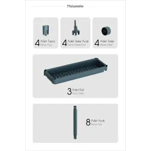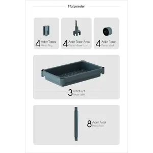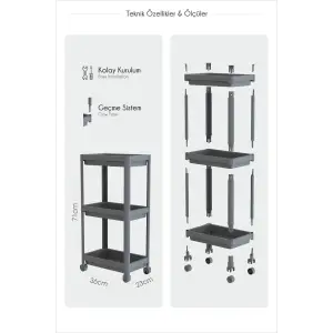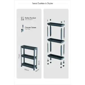 Dar Alan Uyumlu Tekerlekli 3 Katlı Mutfak Rafı – Yağlık, Baharatlık ve Peçetelik Organizer