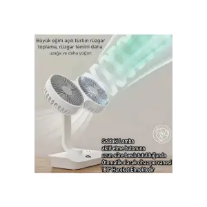 Masaüstü Dijital Ekranlı Çift Fanlı Led Işıklı Soğutucu Fan Ev Ofis Şarjlı Vantilatör