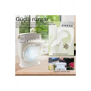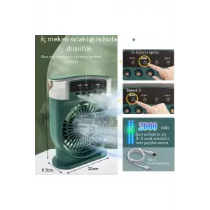 Şarjlı 600 Ml Su Hazneli Taşınabilir Masaüstü Vanilatör Güçlü Fan Ve 2000 Mah Pil Yeşil