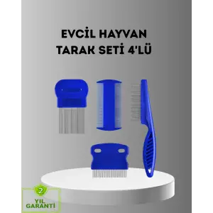 4 Parçalı Evcil Hayvan Tarak Seti – Paslanmaz Çelik Dişli, Ergonomik Saplı