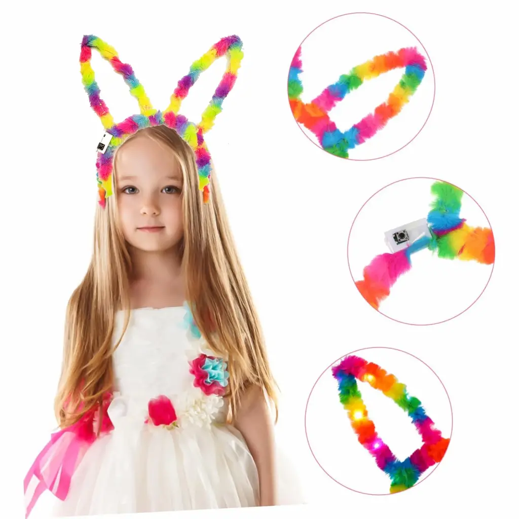 - Göz Alıcı LED Işıkları: Fiber optik LED teknolojisi sayesinde, tavşan kulakları gökkuşağının tüm renklerinde ışıl ışıl parlıyor. Karanlık ortamlarda bile dikkatleri üzerinize çekmenizi sağlayan bu ışıklar, partilere ve festivallere renk katıyor.