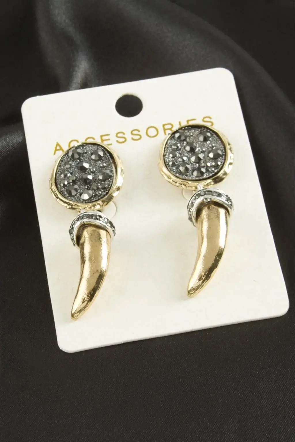 Küpe; Ürün malzemesi taş ve metaldir. Ürün boyu 6 cmdir. Kartlı ve paketiyle beraber gönderilecektir.